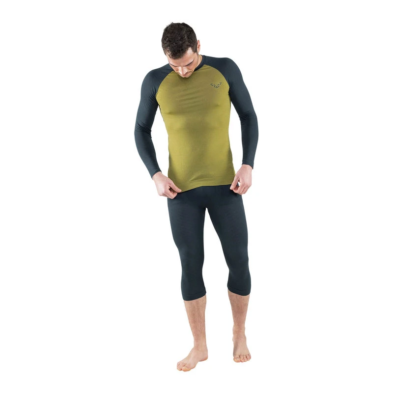 Le pull, fabriqué pratiquement sans coutures, est très doux et agréable sur la peau. En association avec le collant DYNAFIT Tour Light Merino 3/4, il offre une excellente chaleur et constitue une première couche parfaite pour le ski de randonnée.