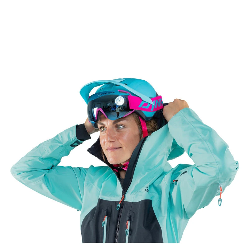 La veste se combine parfaitement avec le pantalon de randonnée DYNAFIT Free GORE-TEX et vous pouvez fixer la jupe pare-neige au pantalon pour empêcher la pénétration de la neige dans vos vêtements.