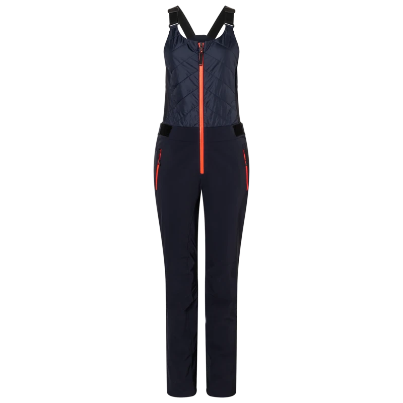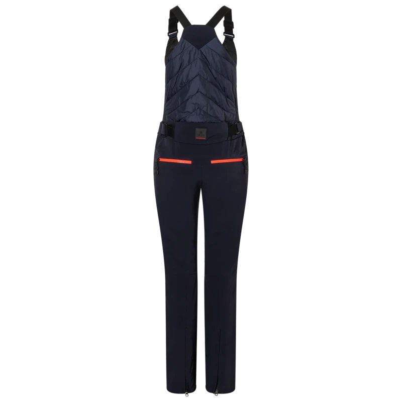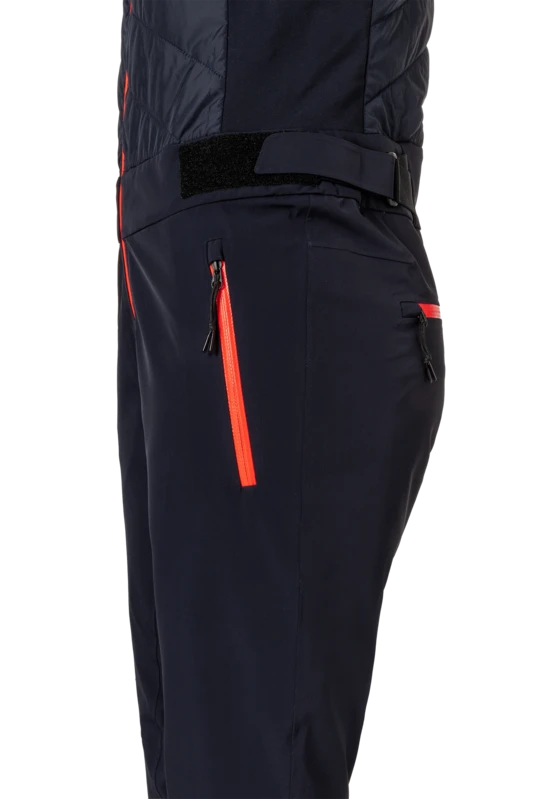 Pantalon de ski à bretelles avec corps en nylon matelassé. Entrée zippée. Ceinture réglable par velcro. Isolation Ecodown 100g pour le corps. Etiquette en caoutchouc au centre de la ceinture arrière.